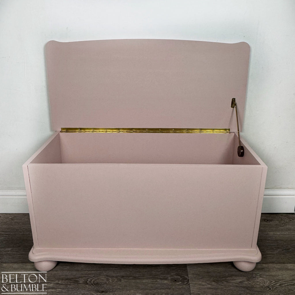 This charming solid pine blanket box has been thoughtfully refinished in “Rose Water”by Fusion Mineral Paint — a beautifully soft, powdery blush that brings warmth and calm to any interior. The colour pairs effortlessly with both modern neutrals and vintage-inspired décor, making it a versatile accent piece for any room.