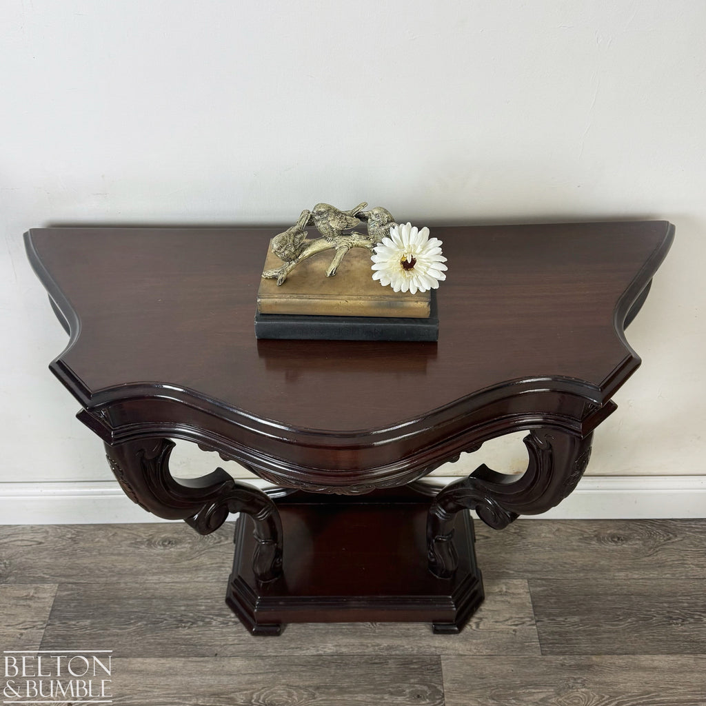 Reproduction Victorian Mahogany Serpentine Hallway Console Table with Carved Scroll Detail